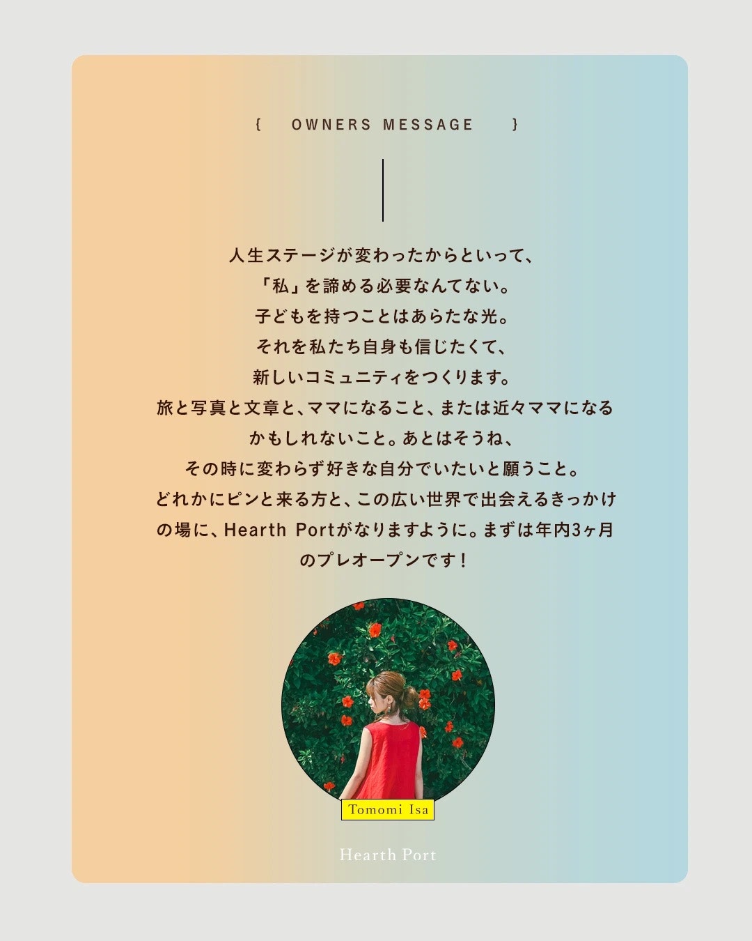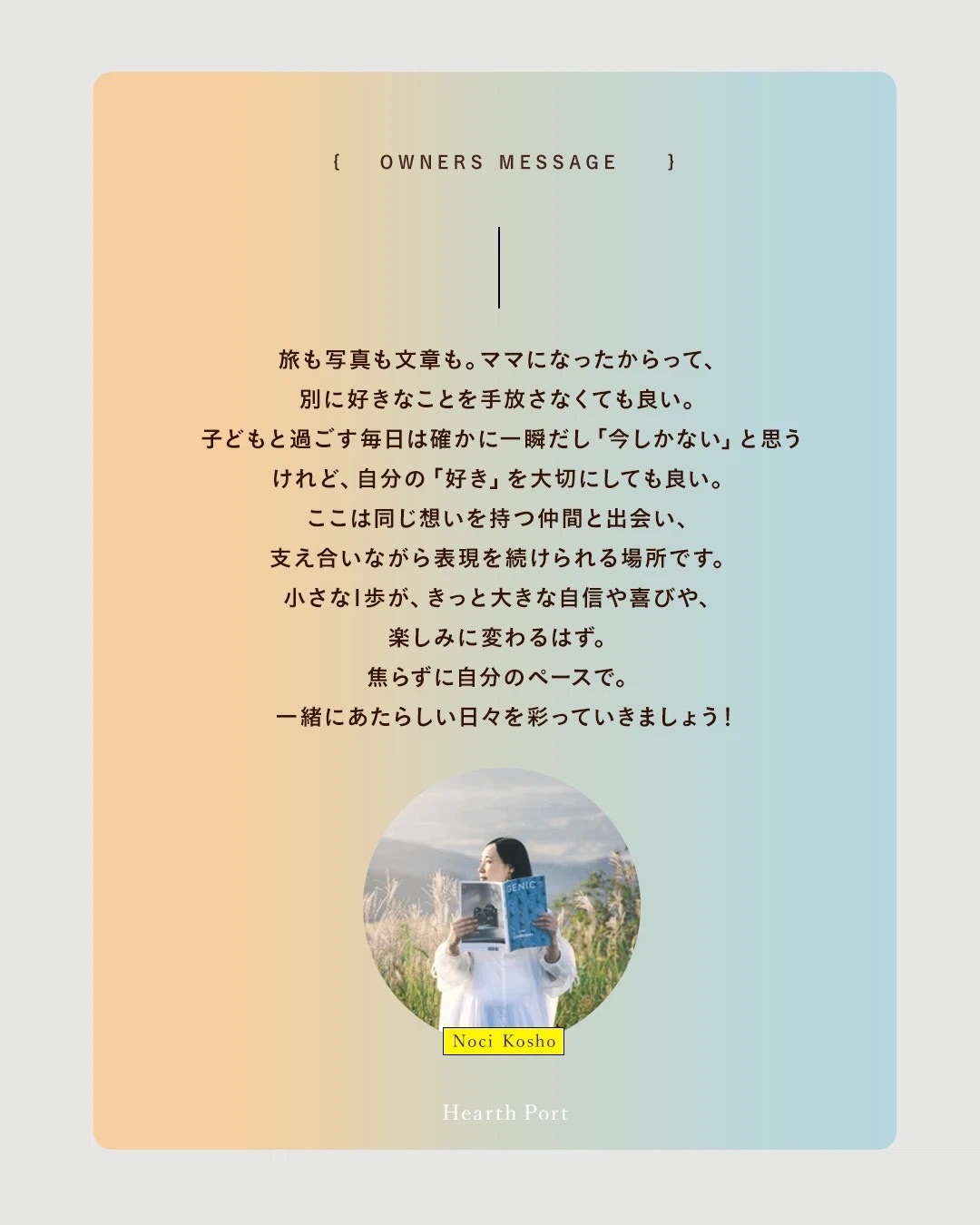 「Hearth Port」は、 旅と写真と文章を愛するママたちが集まる、オンラインコミュニティです。
